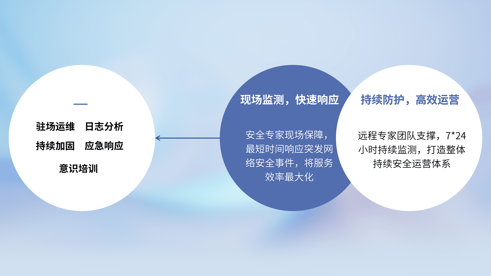针对客户行业特性,,,,提供专属的一站式安全管理服务,,,帮助客户全面感知网络空间威胁,,,通过安全专家的线上、、线下防护支持,,,,实现风险闭环,,,将安全保障常态化,,,为客户打造常态化安全运维运营服务。。。。